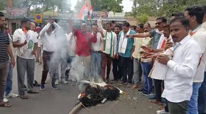 भाजपा के राजस्थान प्रभारी राधा मोहन अग्रवाल का कांग्रेस ने जलाया पुतला